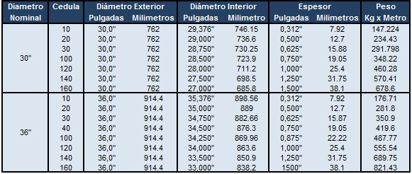 TABLA DE ESPECIFICACIONES DE TUBERIA EN ACERO AL CARBON